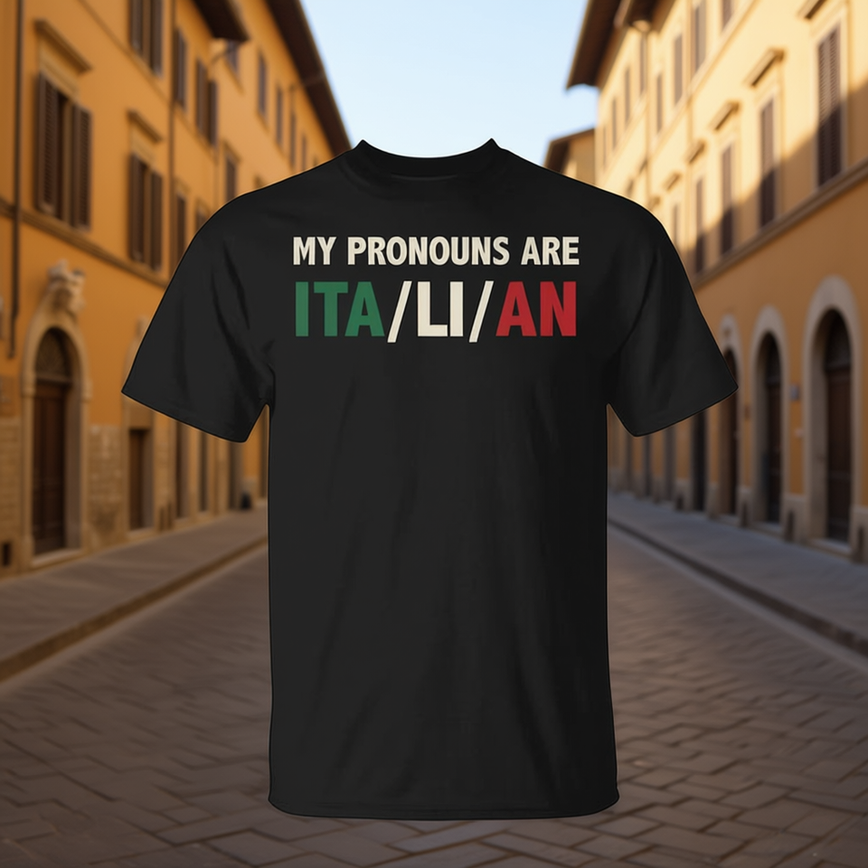 เสื้อยืดลายธงชาติอิตาลีพร้อมข้อความแสดงความภาคภูมิใจในภาษาอิตาลี ปรับแต่งคำสรรพนามได้ - สินค้าส่งเสริมการขาย