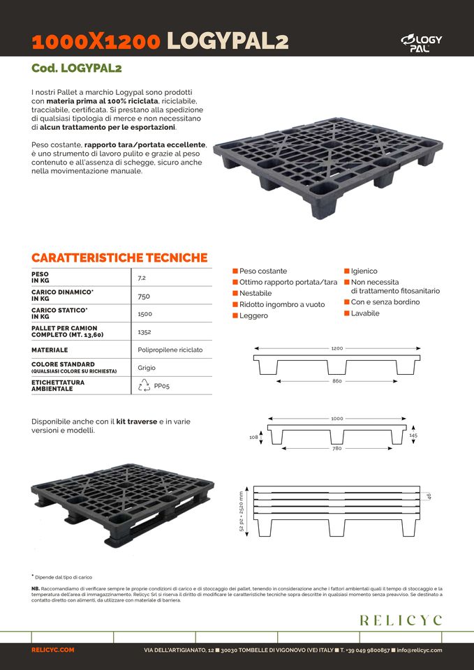 Italian High Quality Plastic Pallet Logypal 2 1000x1200 HDPE Recycled PP Reusable Warehouse Storage Industry Logistic