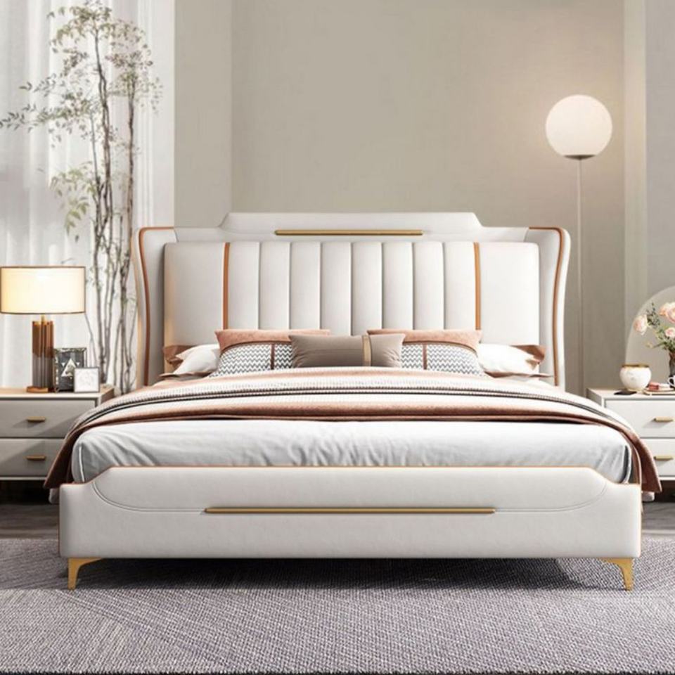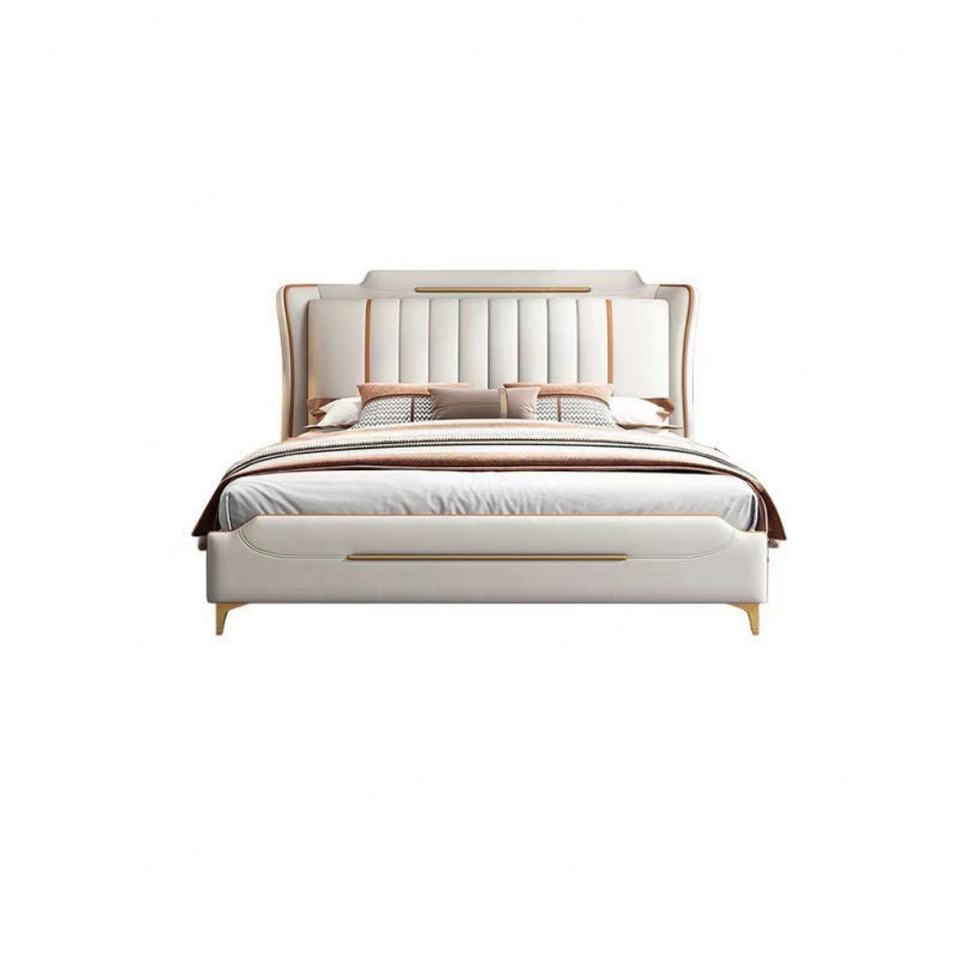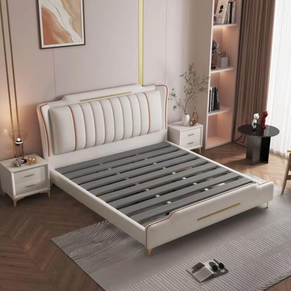 เตียงหนังอิตาลีสไตล์หรูหราทันสมัย เตียงมินิมอลขนาดควีนไซส์ เฟอร์นิเจอร์ห้องนอน
