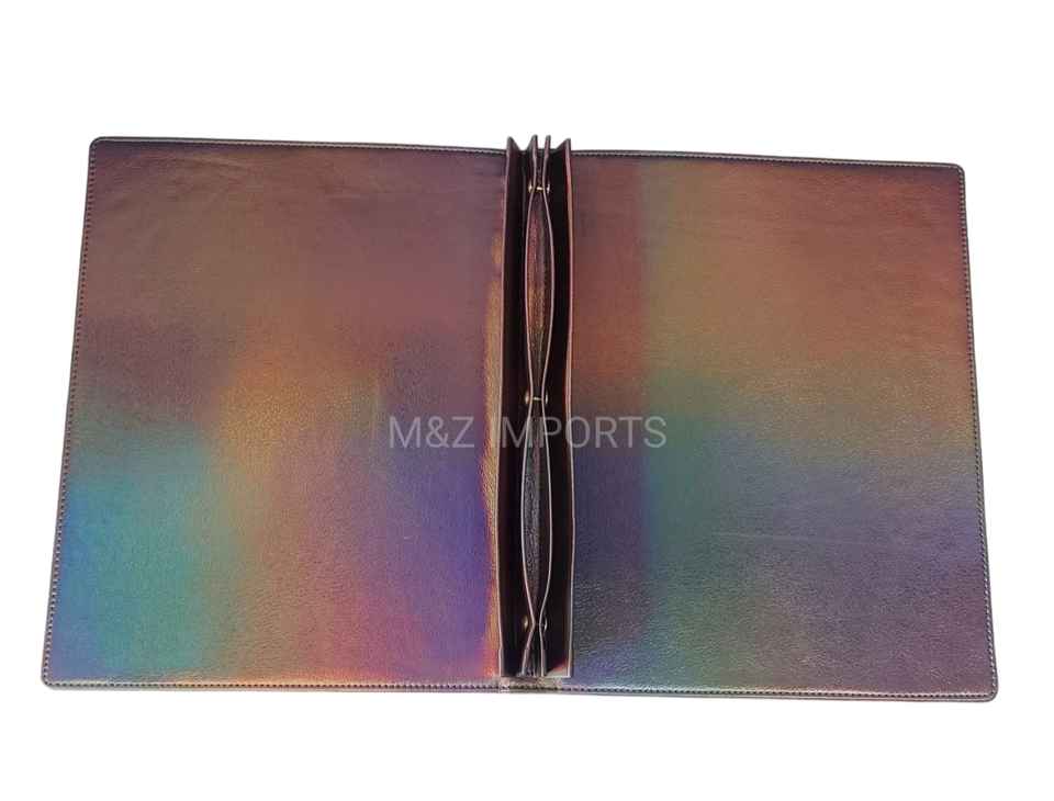คำอธิบาย:โฟลเดอร์เมนูหนังเทียมพร้อมโลโก้ชุบนิกเกิล