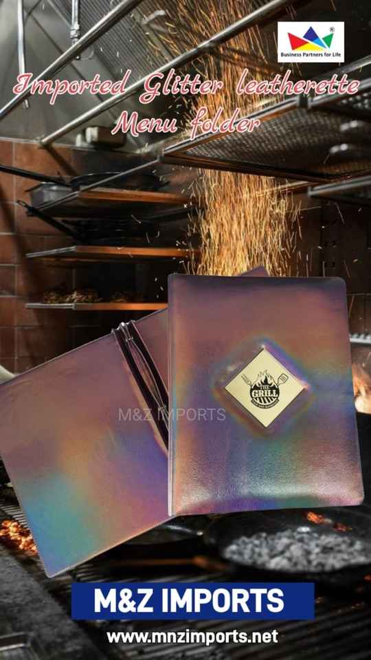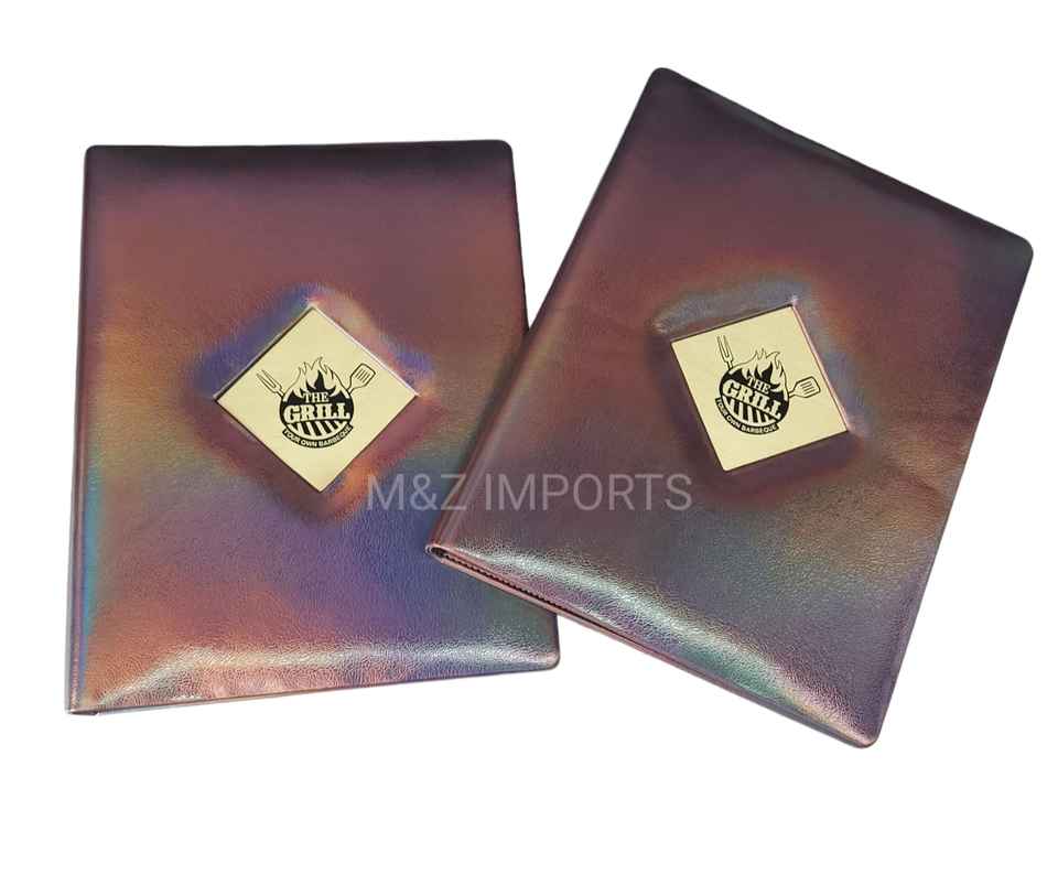 โฟลเดอร์เมนูหนังเทียมพร้อมโลโก้ชุบนิกเกิล
