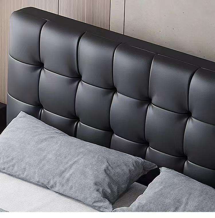 เตียงคู่ขนาด1.8ม. หรูหราสไตล์อิตาลีปรับได้1.5ม. เตียงหนังหุ้มเบาะ2ม. ทำจากไม้สำหรับห้องนอนในบ้านและโรงแรม
