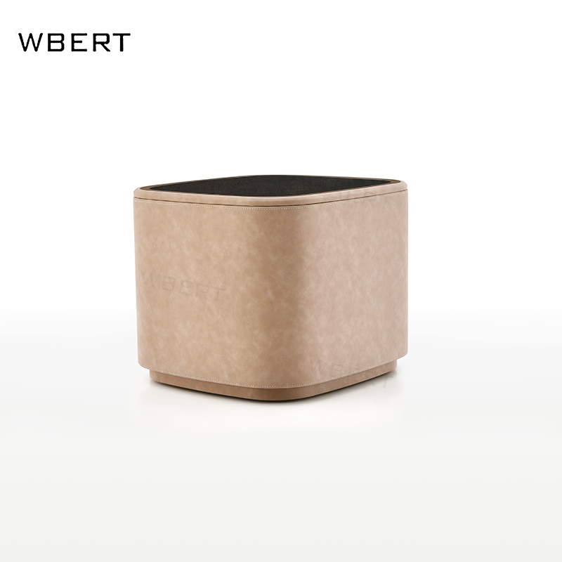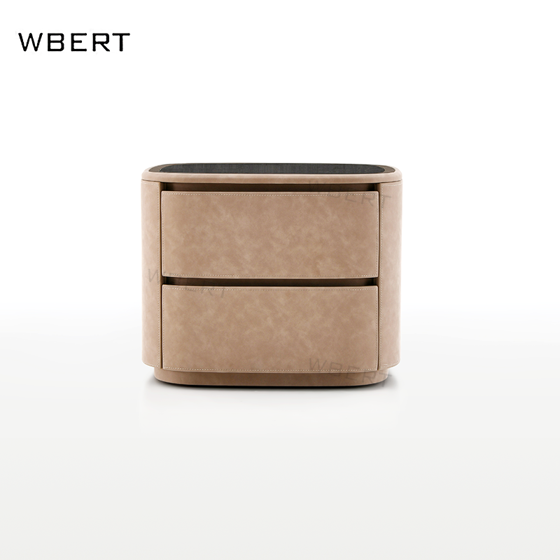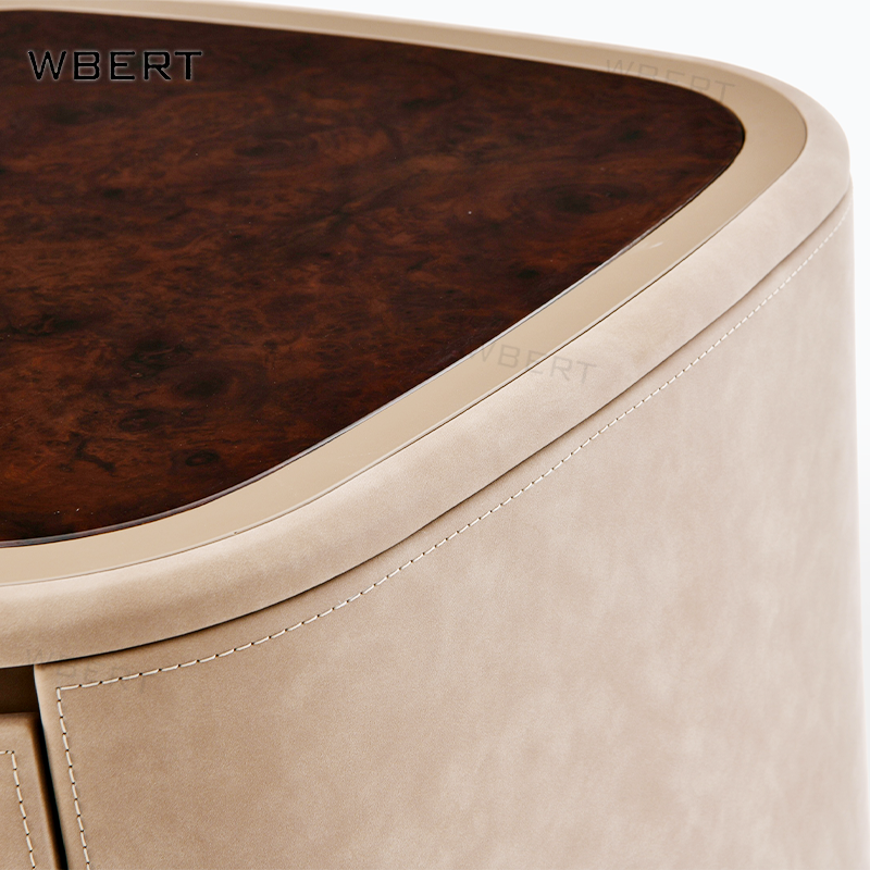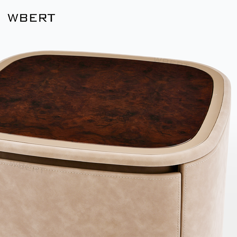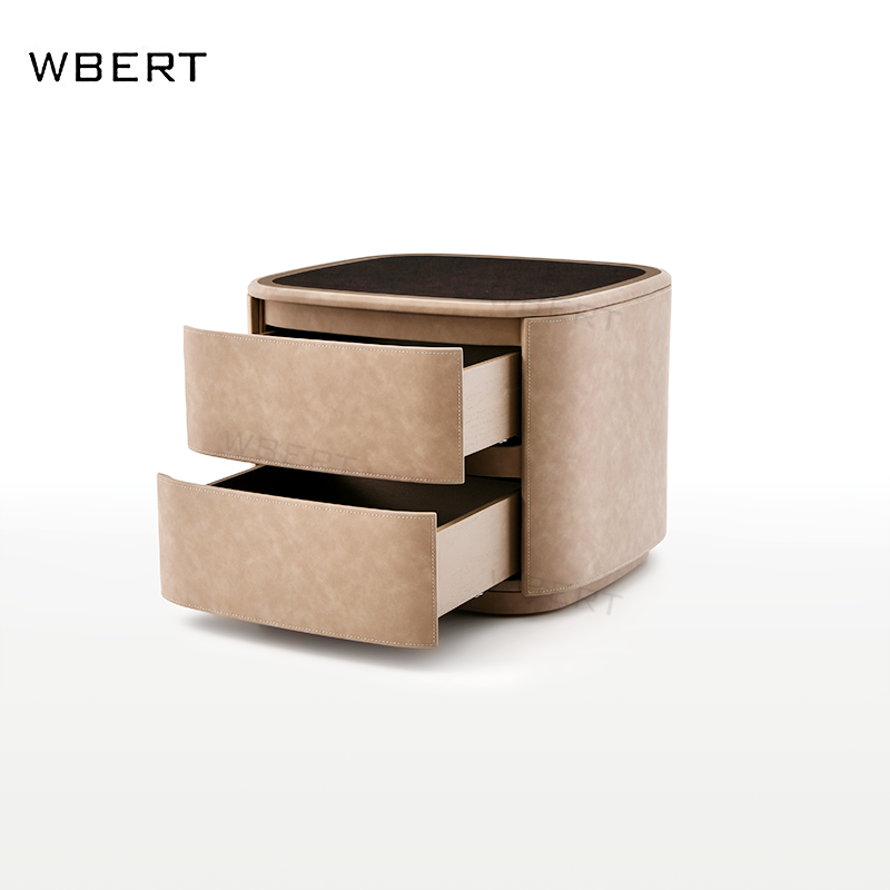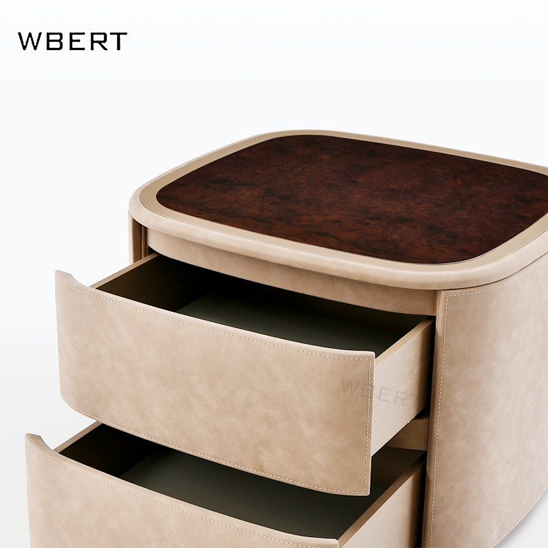 โต๊ะข้างเตียงหนังสไตล์อิตาลีหรูหรา2ลิ้นชักเรียบง่ายสำหรับบ้านวิลล่าโรงแรม nightstands ต้นไม้เนื้องอกธรรมชาติสีดำไม้วอลนัท