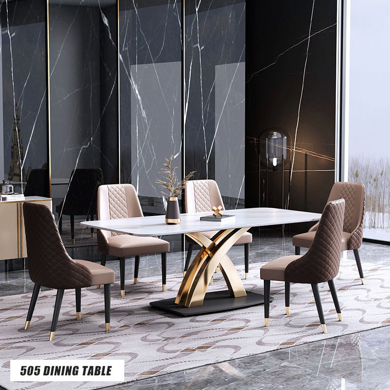 Italian Luxury Marble Top Dining Table Sets Elegant Golden Stainless Steel Leg Modern Black Design for Home Furniture Use