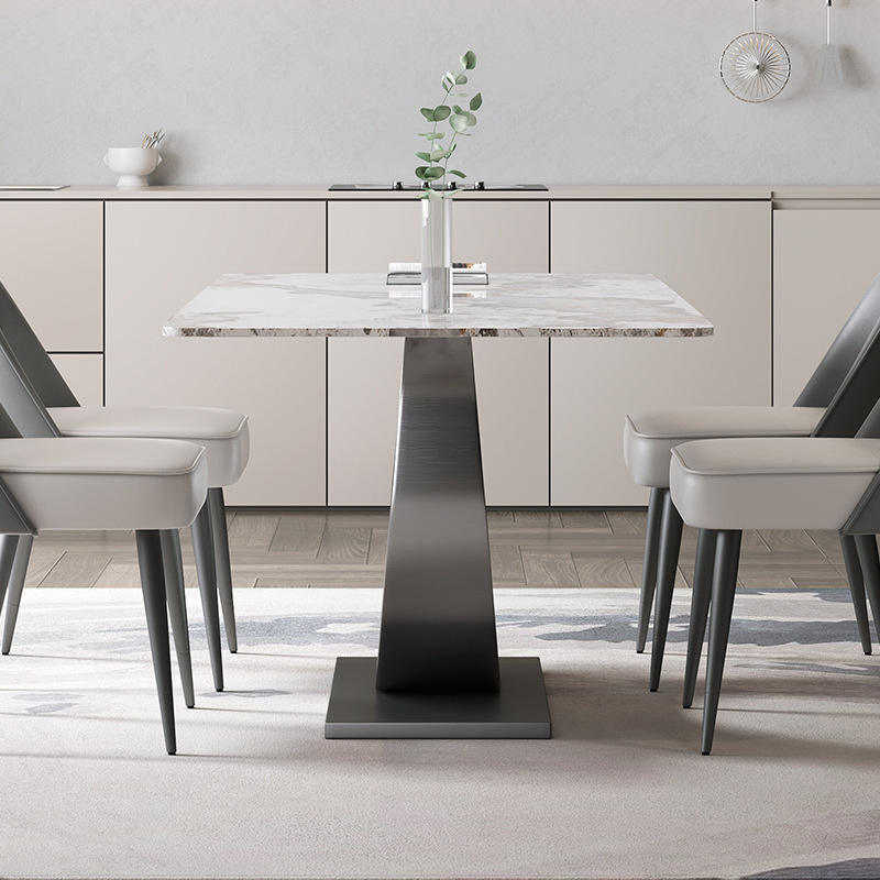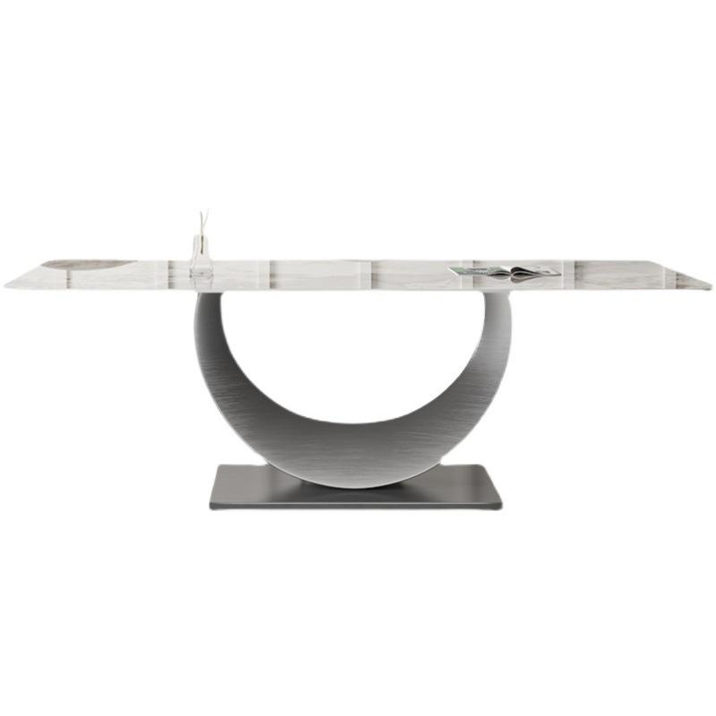 โต๊ะรับประทานอาหารหินอ่อนสไตล์โมเดิร์นหรูหราสไตล์อิตาเลียนดีไซน์ดวงจันทร์ทรงสี่เหลี่ยมผืนผ้าเผาความแข็งสูงสำหรับเฟอร์นิเจอร์ห้องนอนของโรงแรมในบ้าน