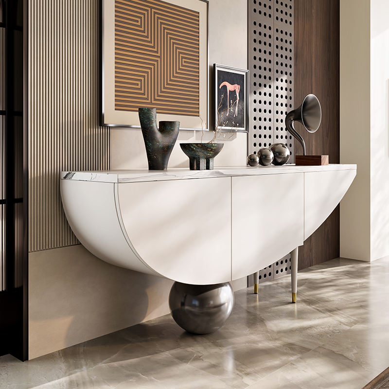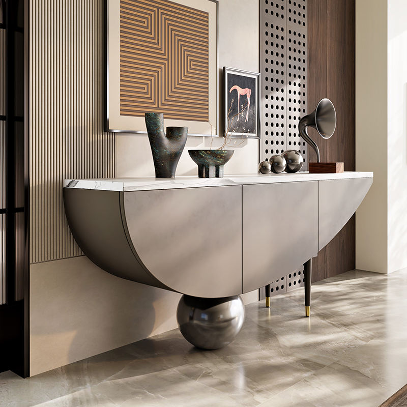 ตู้ข้างไม้เนื้อแข็งสไตล์อิตาลีสุดหรู โต๊ะวางของในห้องโถงบ้านทันสมัย พร้อมตู้เก็บของทรงเรือ สำหรับห้องนั่งเล่นและห้องรับประทานอาหาร