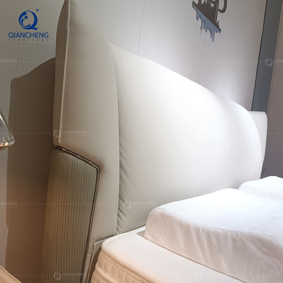 เตียงนุ่มสไตล์อิตาเลียนแบบมินิมอลลิสต์คุณภาพสูงเฟอร์นิเจอร์ห้องนอนผ้าที่ทันสมัยเบาะผ้าขนาดคิงไซส์เตียงคู่สำหรับห้องพักในโรงแรม