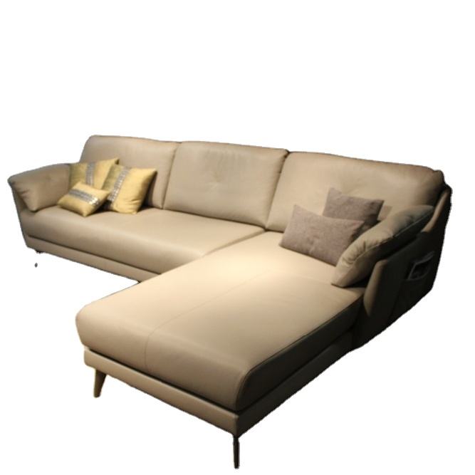 ชุดโซฟาหนังรูปตัว L ขนาดใหญ่สไตล์มินิมอลลิสต์สไตล์อิตาเลียนดีไซน์เรียบง่ายวัสดุผ้าไม้ห้องนั่งเล่นห้องนอนอพาร์ตเมนต์