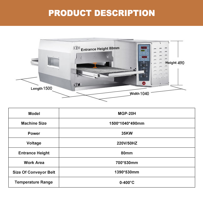 ชื่อผลิตภัณฑ์:เตาอบพิซซ่าสายพานลำเลียงก๊าซ20