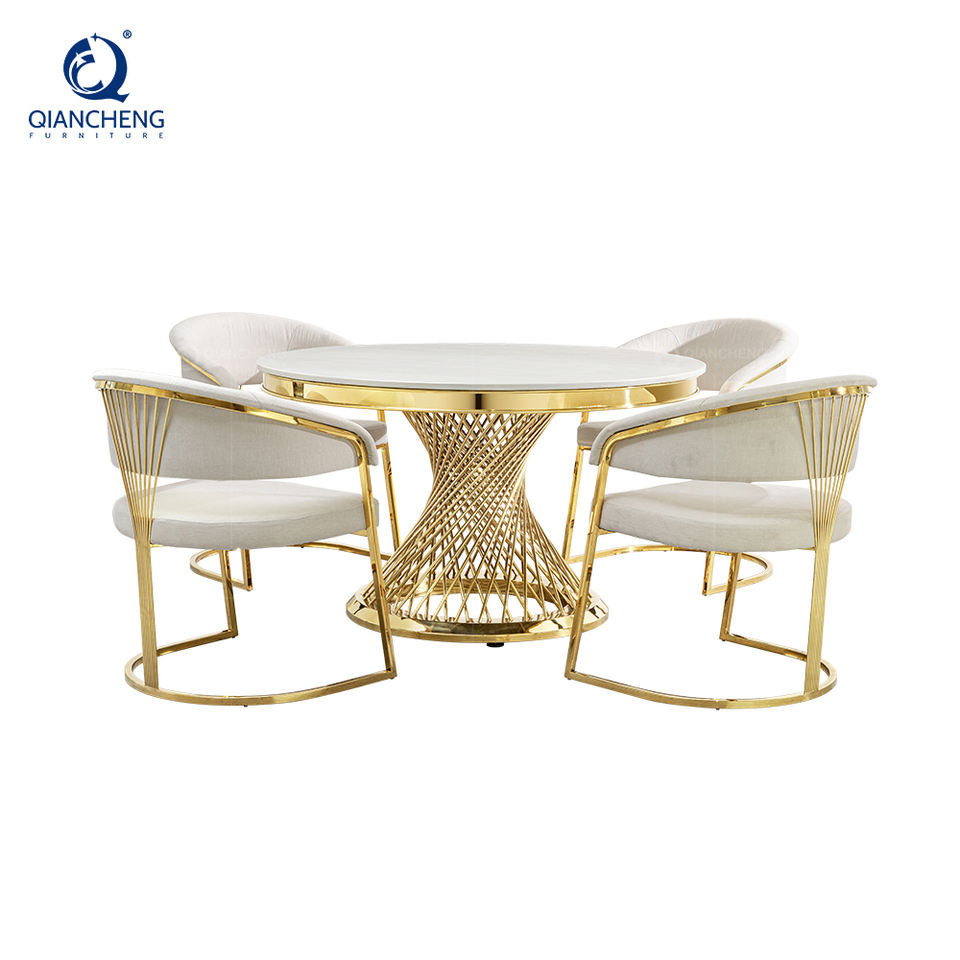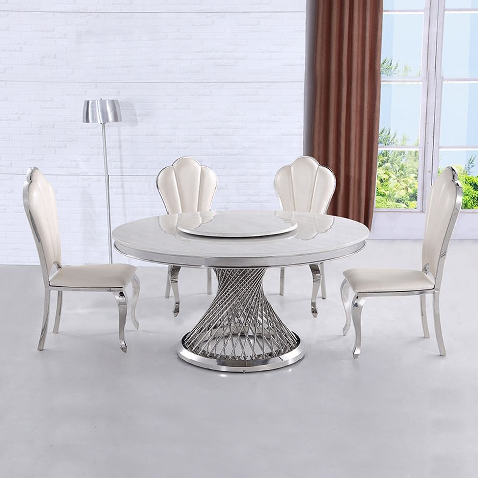 อิตาลีที่ทันสมัยชุดโต๊ะอาหาร8ที่นั่งบ้านเฟอร์นิเจอร์รอบหินอ่อนทองสแตนเลสโต๊ะรับประทานอาหาร