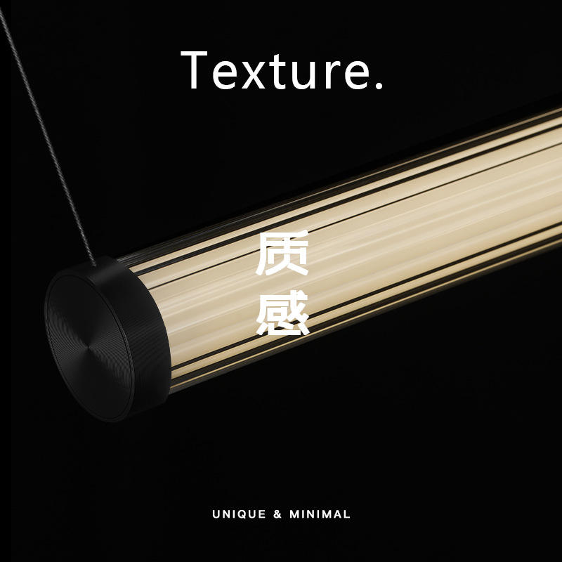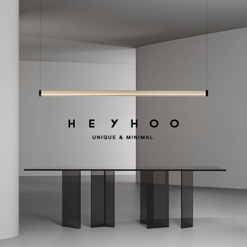 โคมไฟระย้าดีไซน์โมเดิร์นมินิมอลสไตล์นอร์ดิกสำหรับห้องรับประทานอาหารระดับไฮเอนด์ แบบเส้นเดียว แถบแก้ว LED สำหรับเคาน์เตอร์บาร์