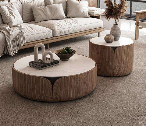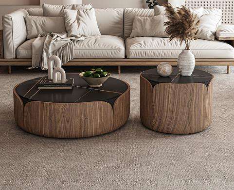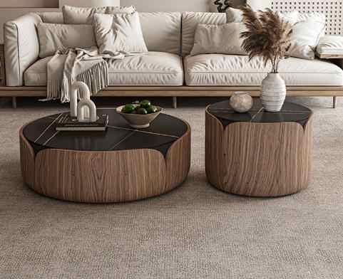 โต๊ะน้ำชาสไตล์มินิมอลแบบอิตาลีหรูหราสไตล์โมเดิร์นแบบหินวอลนัทแข็งโต๊ะกาแฟในบ้านแบบเรียบง่าย