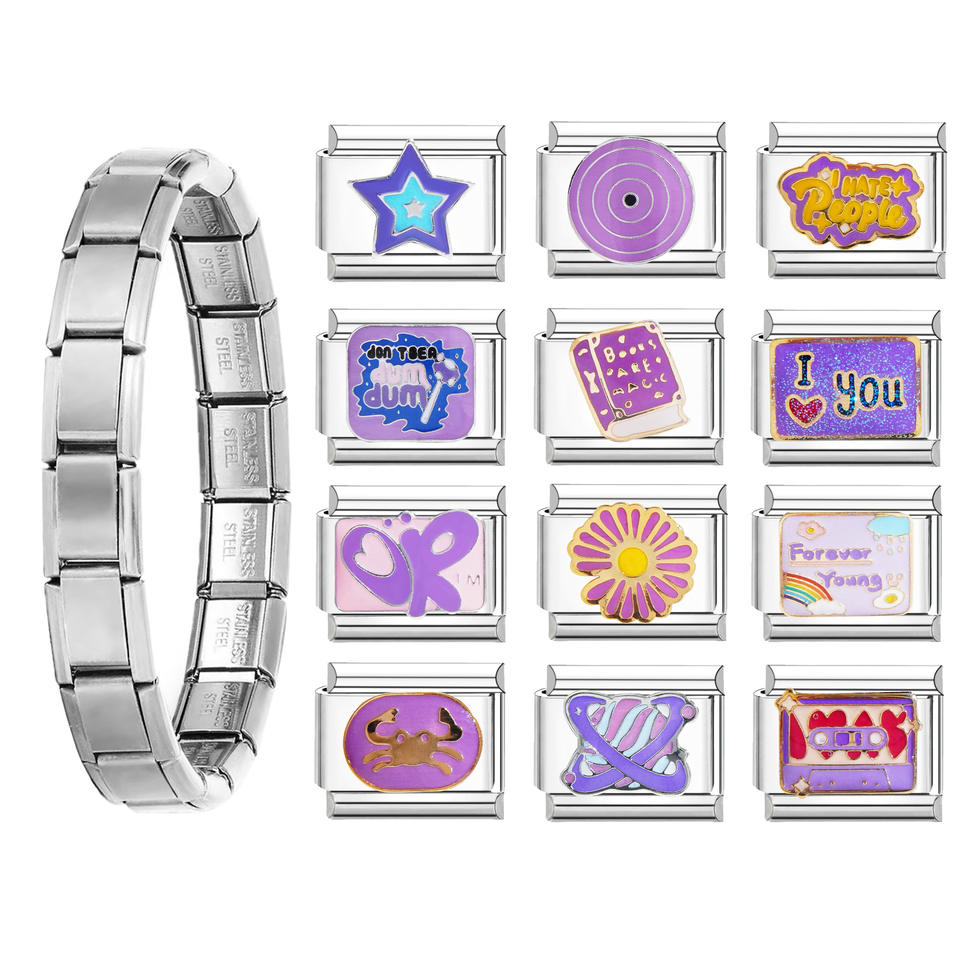ชุดสร้อยข้อมือแบบโมดูลาร์สไตล์อิตาลี DIY พร้อมจี้สแตนเลส ของขวัญสำหรับทุกเพศ เครื่องประดับแฟชั่น สร้อยข้อมือจี้