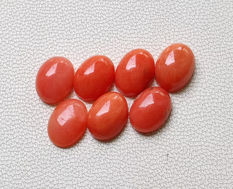 Italian Natural Red Coral Oval Shape Cabochon Gemstones for Jewelry Making Calibrated Loose Stones 6X8 MM Size Quality