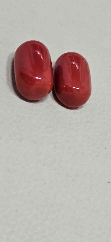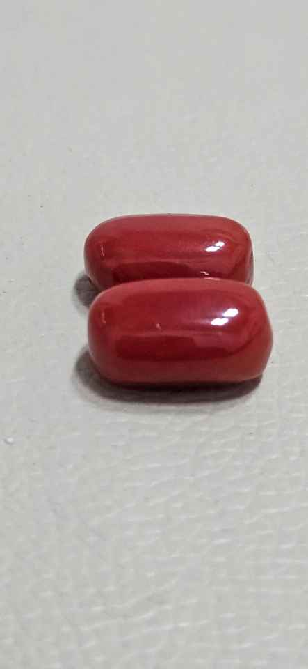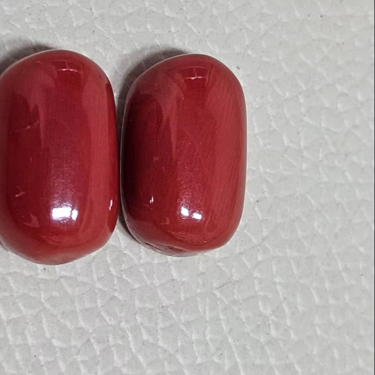 พลอยปะการังแดงอิตาลีเมดิเตอร์เรเนียนรูปไข่คู่ พลอยเม็ดเดี่ยวสำหรับทำเครื่องประดับต่างหู