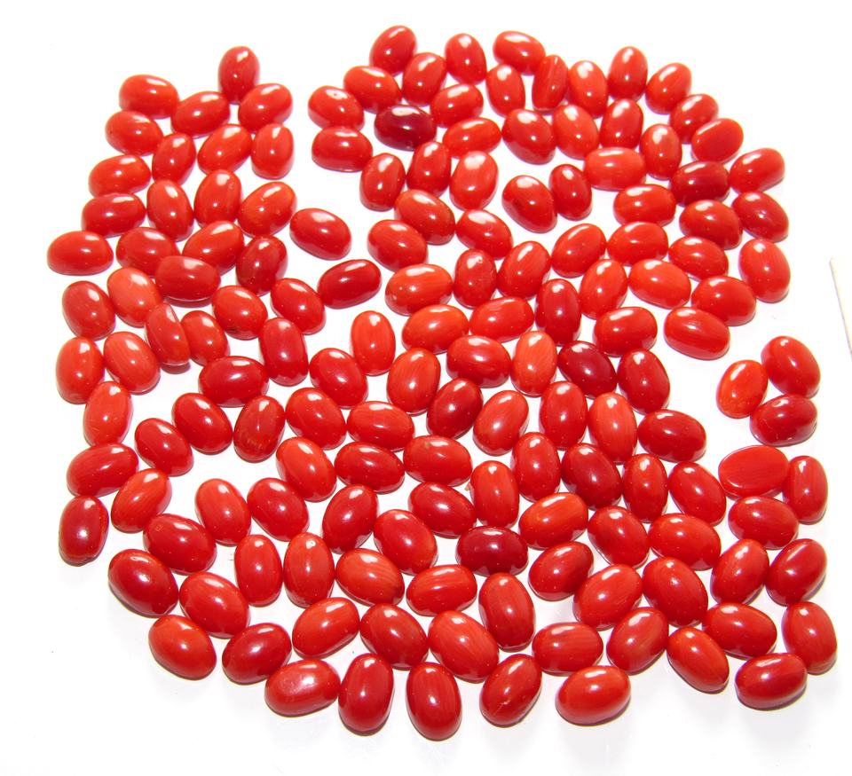 ปะการังแดงอิตาลีทรงรีธรรมชาติขนาด 3 มม. รับรองคุณภาพ ไม่มีรู สำหรับทำเครื่องประดับ คุ้มค่ามาก