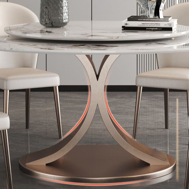 โต๊ะอาหารทรงกลมแบบอิตาลี เก้าอี้ โต๊ะอาหารทรงกลมท็อปหินอ่อน พร้อมโต๊ะอาหารทรงกลมแบบหมุนได้