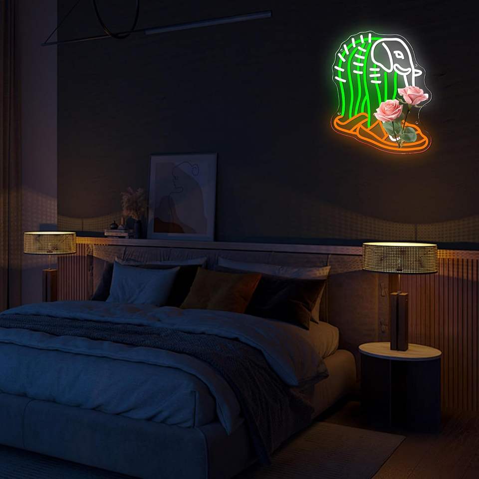 ไฟนีออน LED สไตล์อิตาลีรูปการ์ตูนตลกรูปสัตว์สัญลักษณ์ติดผนังรูปช้างกระบองเพชรสำหรับห้องนอนคลับคาเฟ่