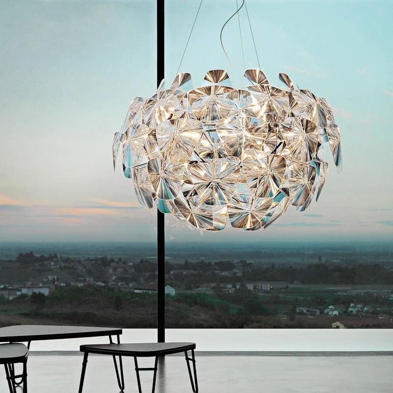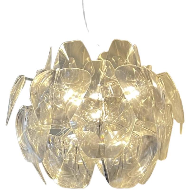 โคมไฟระย้าคริสตัล LED ปรับระดับความสูงได้ สไตล์อิตาลี หรูหราเบาๆ ดีไซน์กลีบดอกไม้สุดสร้างสรรค์ เหมาะสำหรับห้องรับประทานอาหารและห้องนอน