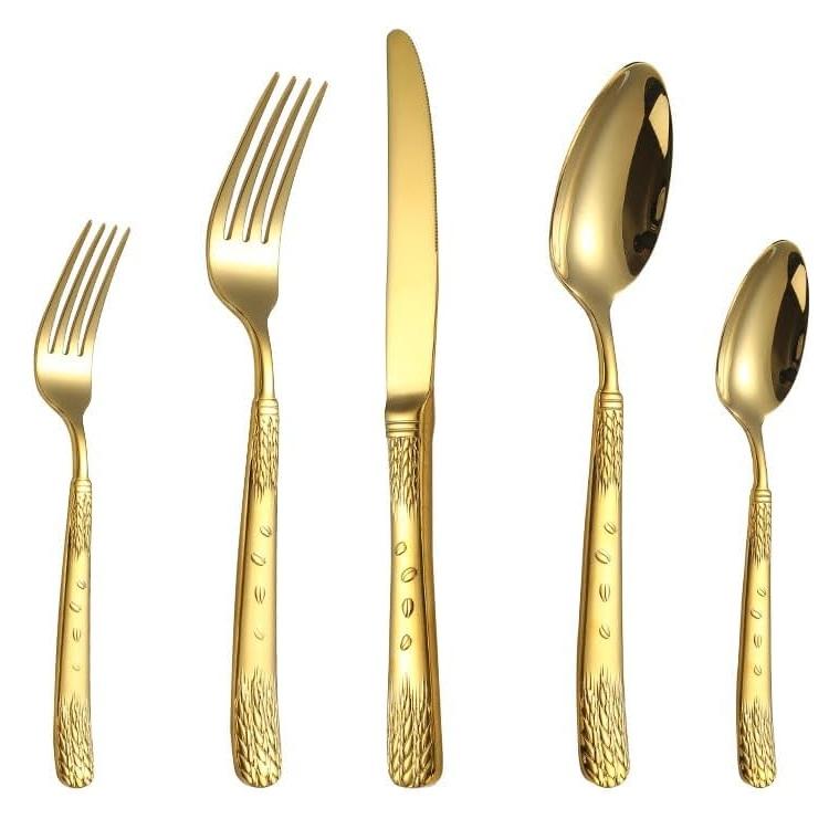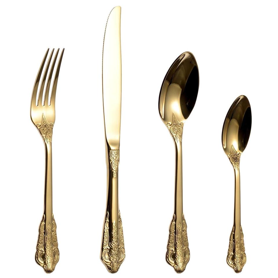 ชุดช้อนส้อมสแตนเลสพกพาสไตล์อิตาลีสำหรับโรงแรมชุดเครื่องใช้บนโต๊ะอาหารตกแต่งกระจกสีทอง4ชิ้นสำหรับงานจัดเลี้ยง