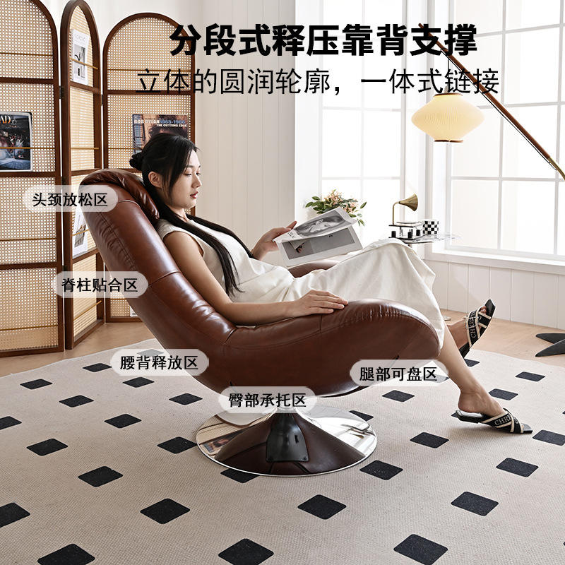 เก้าอี้โซฟาเดี่ยวสไตล์อิตาลี หนังแท้ หมุนได้ ปรับเอนได้ เก้าอี้พักผ่อนสำหรับบ้าน