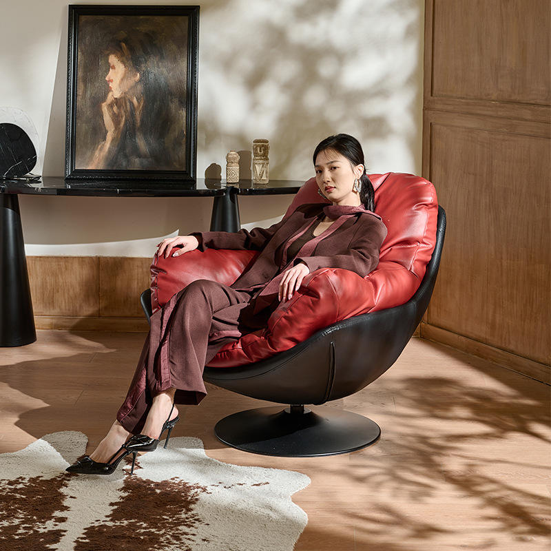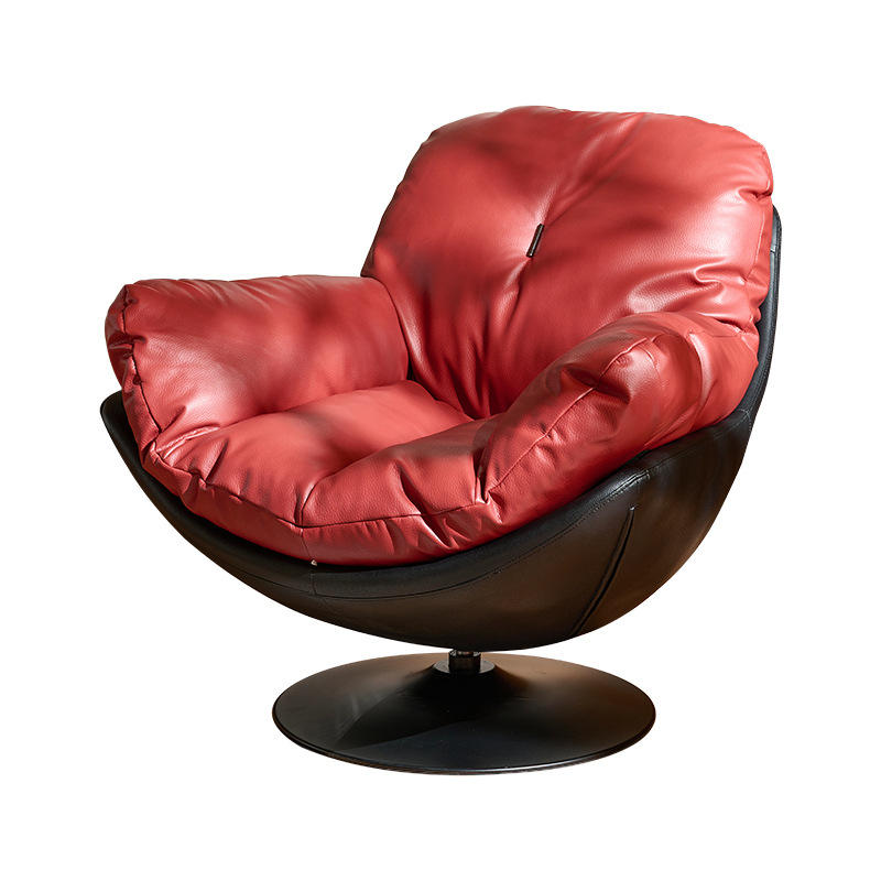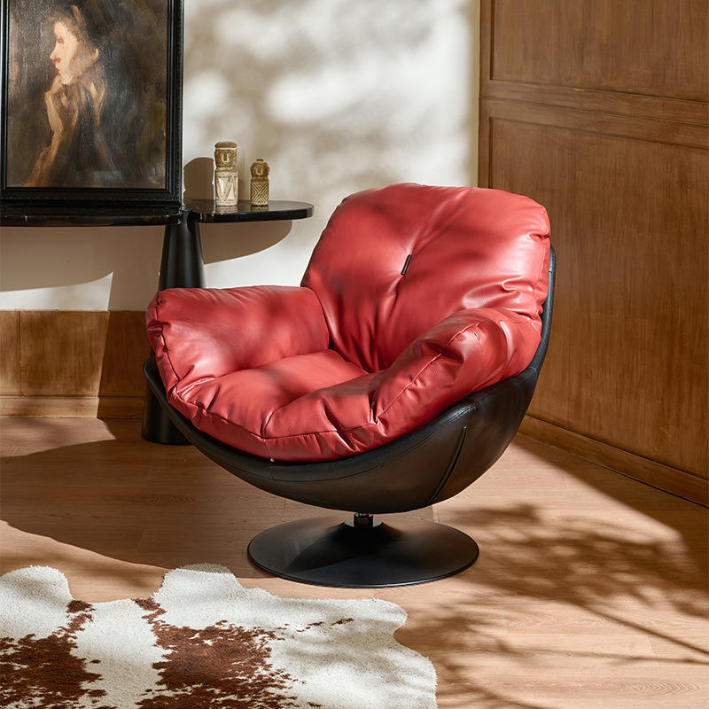 เก้าอี้โซฟาเดี่ยวสไตล์อิตาลีหนังสีแดงเก้าอี้หมุนได้ห้องนั่งเล่นเก้าอี้ดีไซน์เนอร์ตกแต่งบ้านสไตล์โมเดิร์นเรโทร