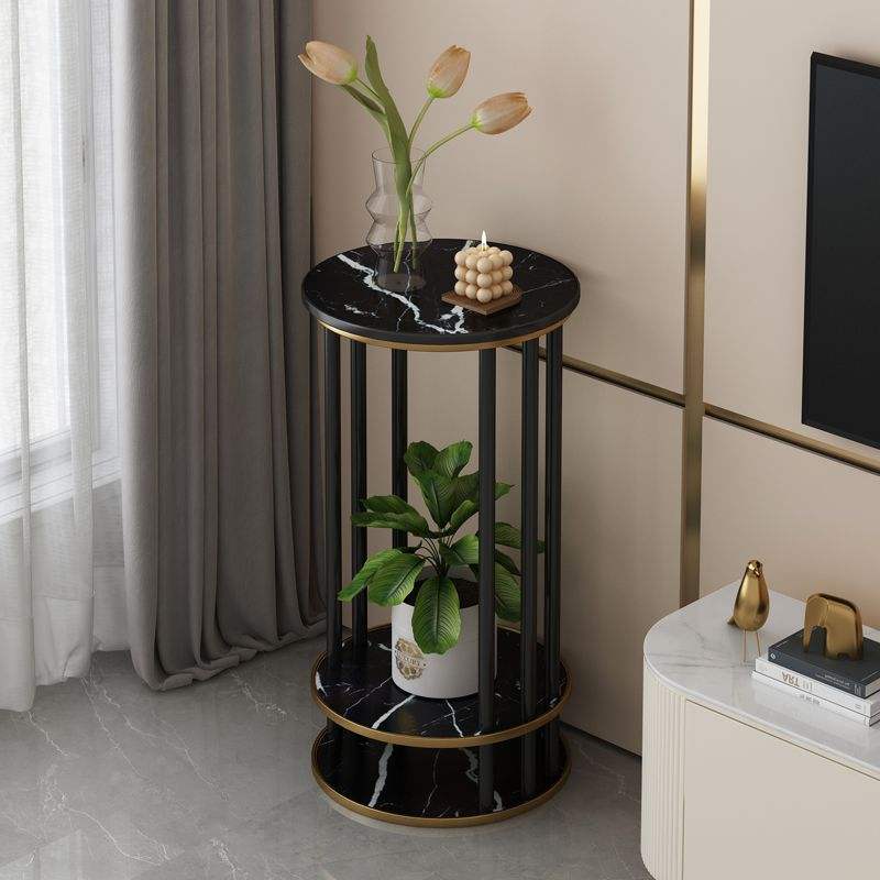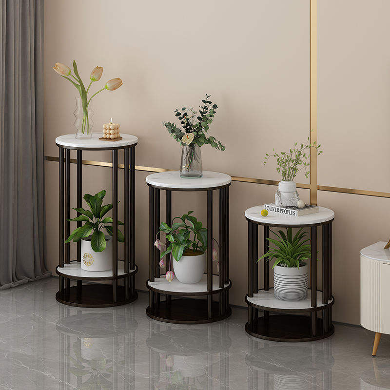 ชั้นวางดอกไม้ไม้เนื้อแข็งสไตล์อิตาลีพร้อมพื้นผิวหินสำหรับจัดเก็บของในห้องนั่งเล่น