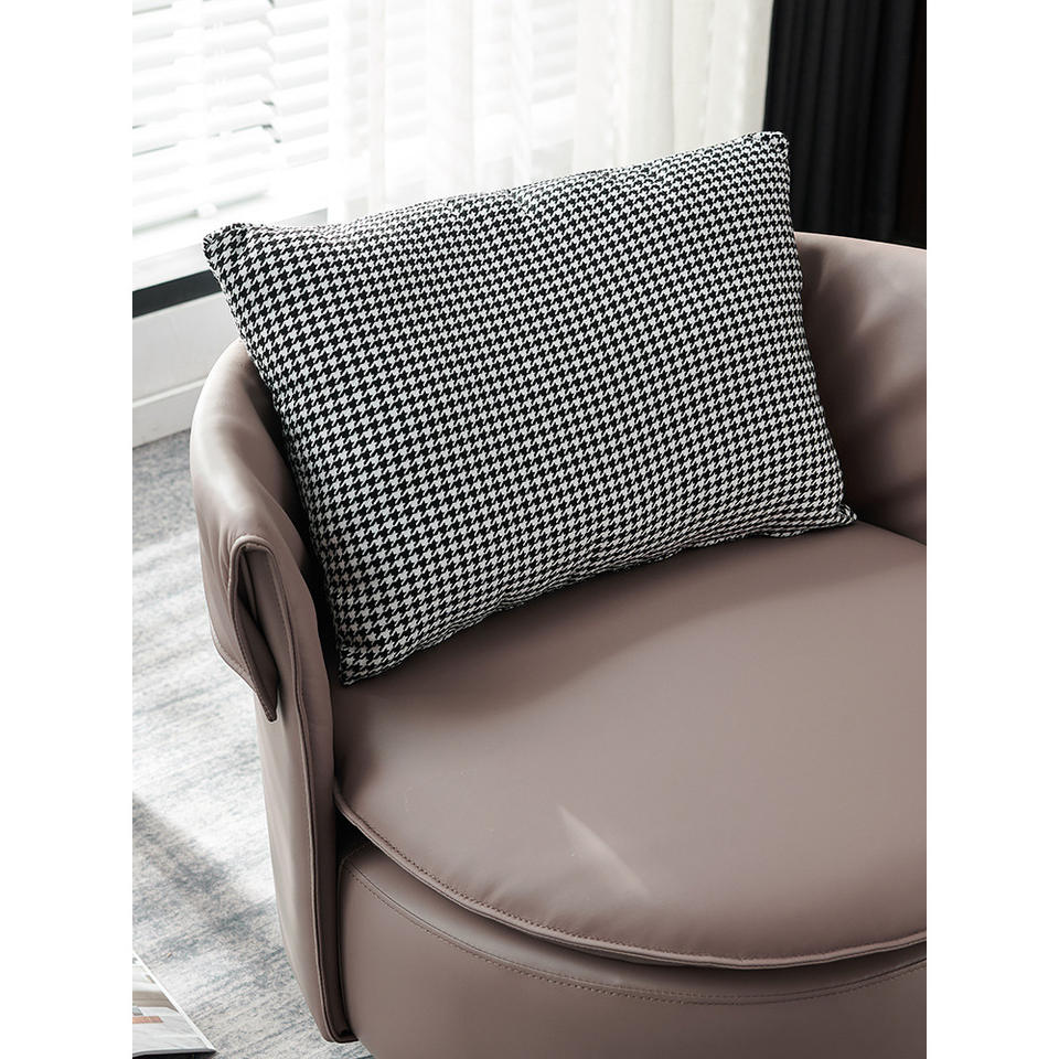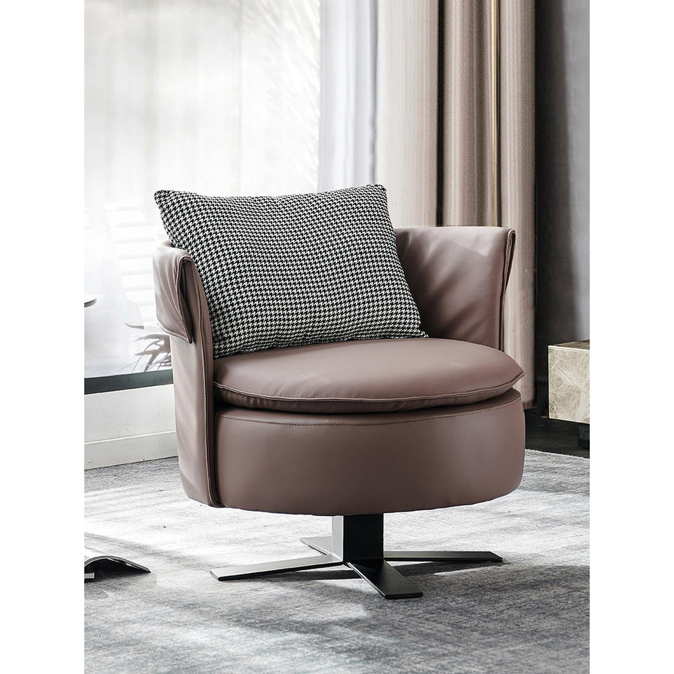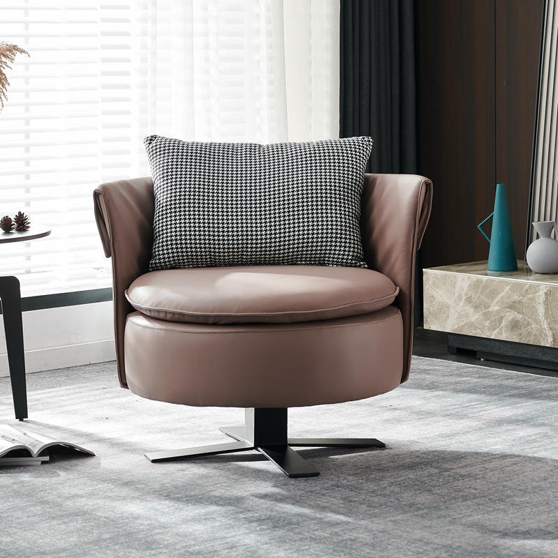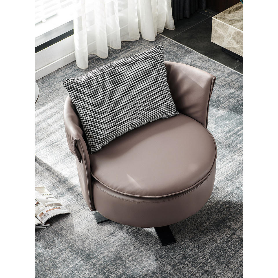 เก้าอี้เลานจ์หมุนได้สไตล์อิตาลี เก้าอี้โซฟาเดี่ยวทรงกลมหนังสีน้ำตาล เฟอร์นิเจอร์ห้องนั่งเล่นห้องนอน