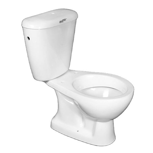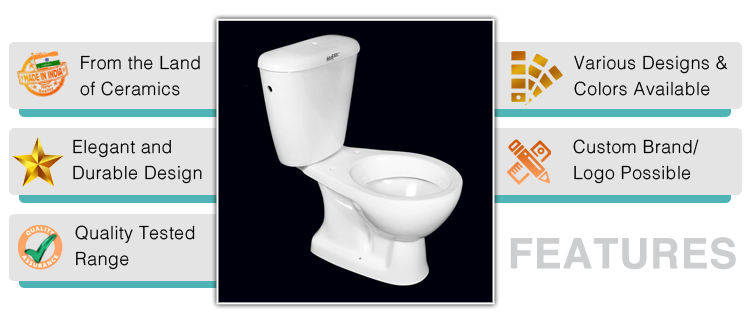 โถสุขภัณฑ์เซรามิกสีขาวแบบสองชิ้น ระบบกดน้ำสองปุ่ม ดีไซน์ทันสมัย ผลิตในอินเดีย สำหรับใช้ในห้องน้ำ จำหน่ายแบบขายส่ง