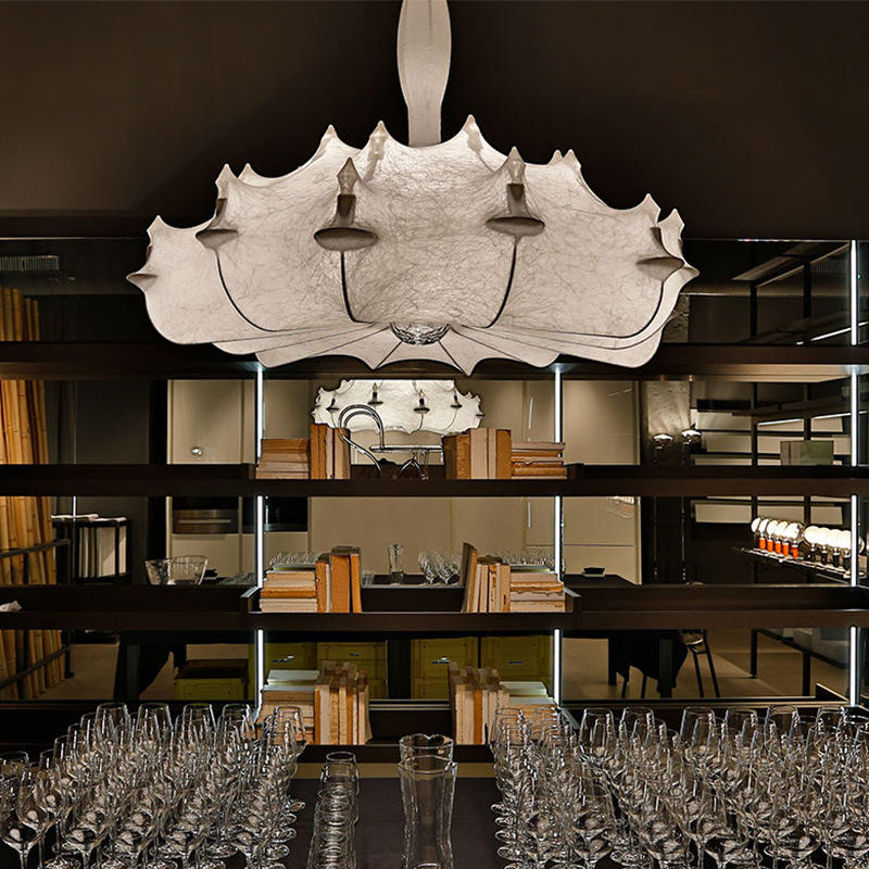 โคมไฟระย้าผ้าไหมสีขาวสไตล์อิตาเลียนโมเดิร์น นอร์ดิก ดีไซน์เนอร์ พร้อมโคมไฟสีครีม สำหรับห้องนั่งเล่น ห้องรับประทานอาหาร กลางห้อง