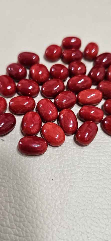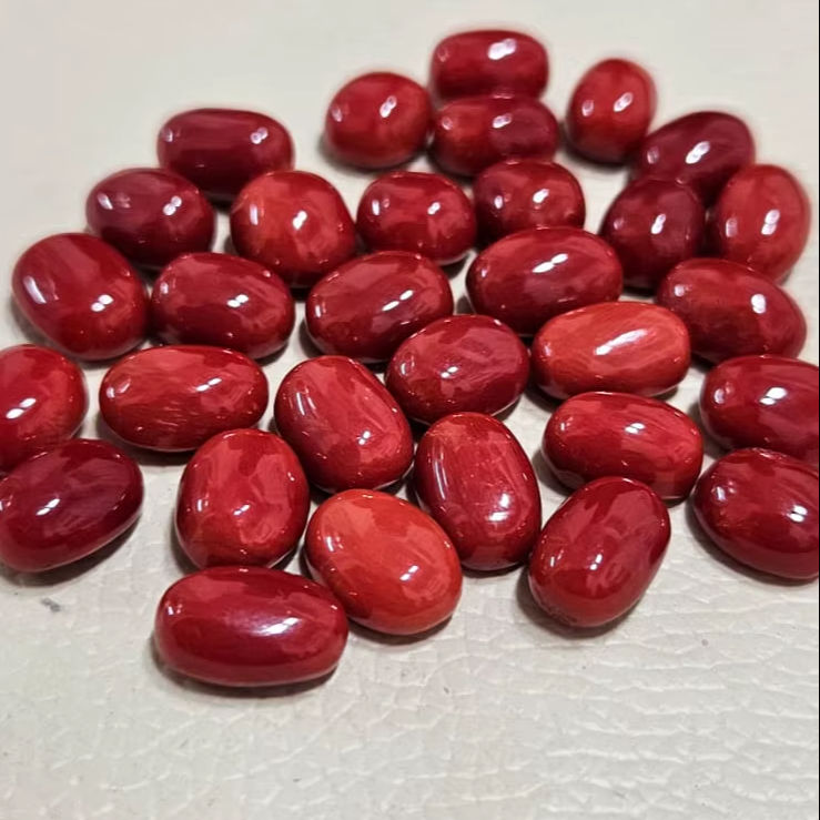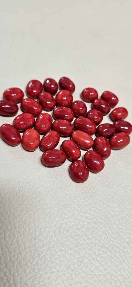 ปะการังแดงอิตาลี หินธรรมชาติจากทะเลเมดิเตอร์เรเนียน หินหลวมขนาดใหญ่ รูปทรงกลมรี สีแดงสวย คุณภาพดีเยี่ยม เหมาะสำหรับทำเครื่องประดับ
