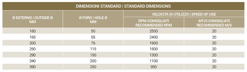Tabella delle misure