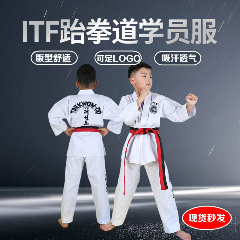 ชุดเทควันโดสำหรับเด็ก สีขาว แบบยูนิเซ็กซ์ ทนทาน เหมาะสำหรับการฝึกซ้อมและการแข่งขันศิลปะการต่อสู้