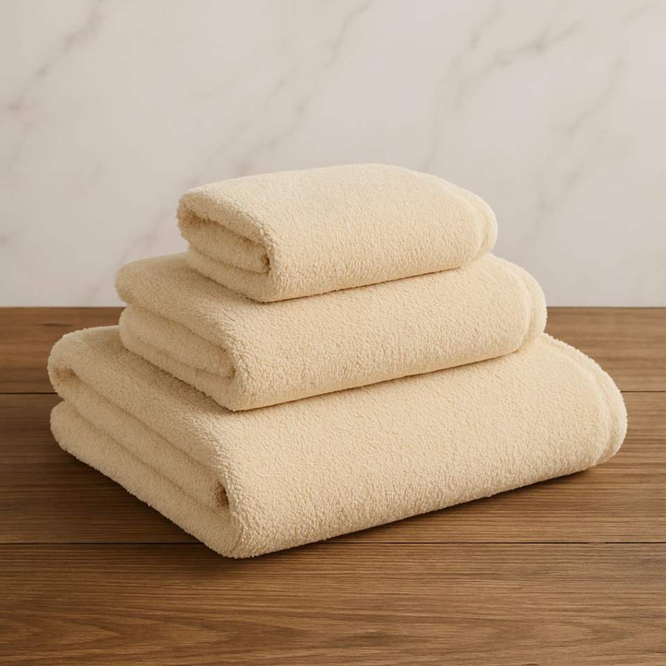 ผ้าขนหนูอาบน้ำผ้าฝ้ายออร์แกนิค 100% สีงาช้าง ได้รับการรับรองมาตรฐาน GOTS นุ่ม ซึมซับดี แห้งเร็ว เป็นมิตรกับสิ่งแวดล้อม คุณภาพระดับสปาสุดหรู