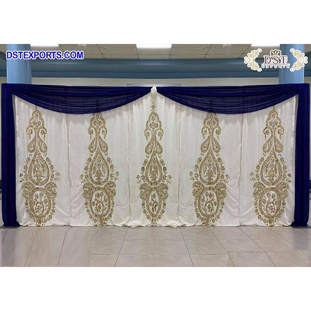 ผ้าม่านฉากหลังงานแต่งงานสีฟ้าไอวอรี่ทำมือ