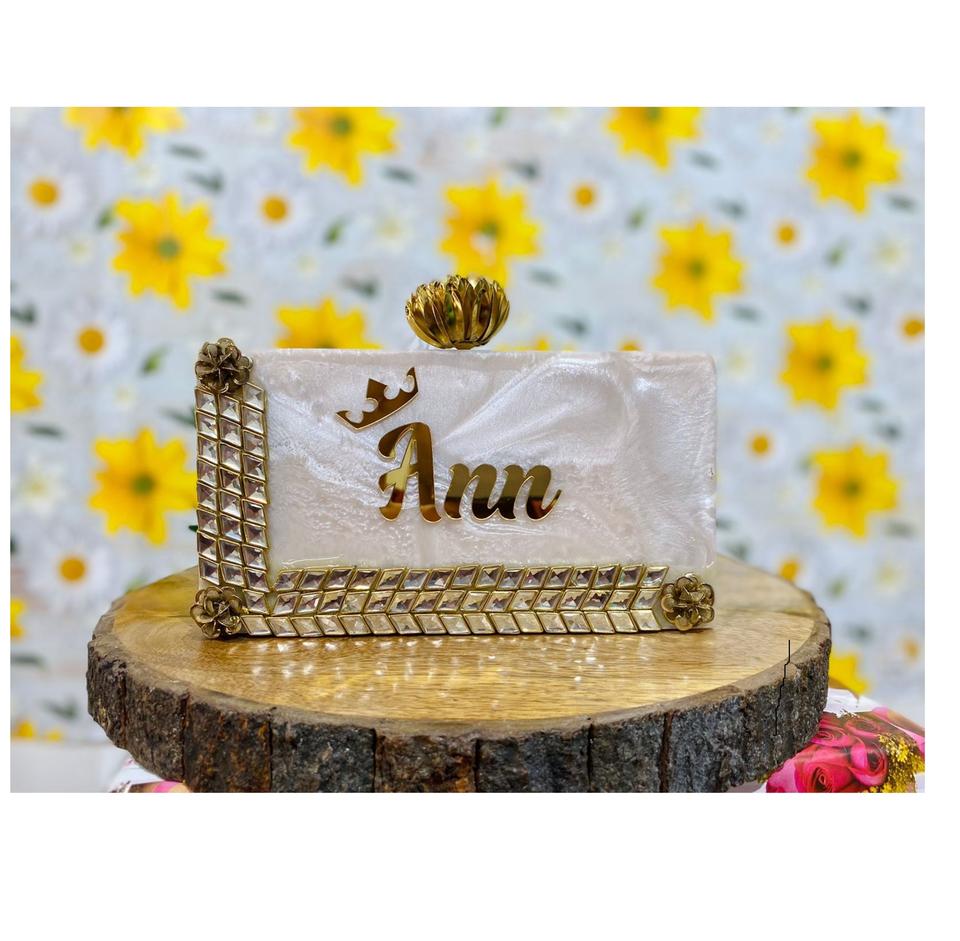 Ivory Color Indian Handicraft Fashion Resin Custom Type Clutch Bag for Women Handicraft