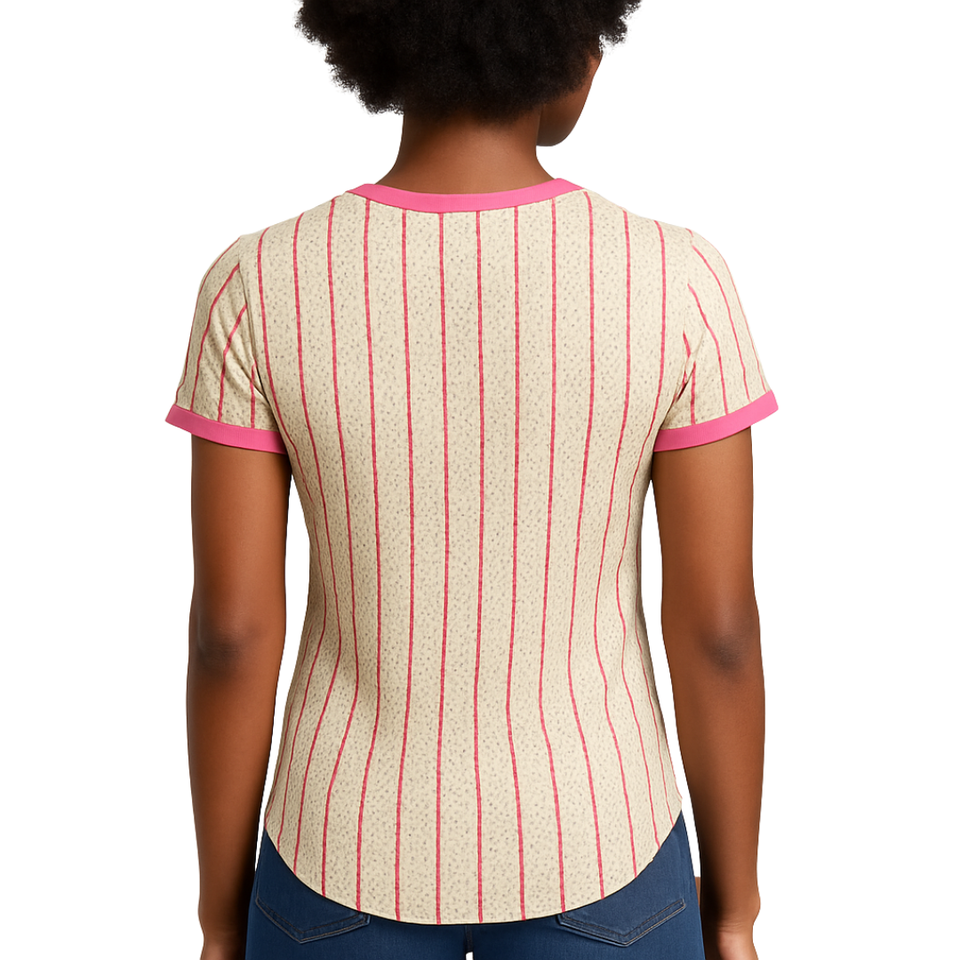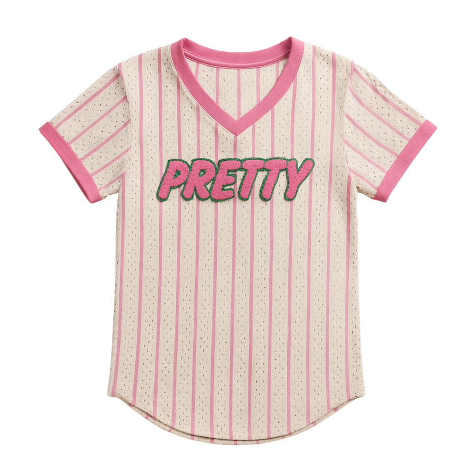 เสื้อเบสบอลลายทางสีงาช้างสำหรับสาวสวย ชุดนักเรียนหญิงสีชมพูและสีเขียว สไตล์นักศึกษาหญิง ชุดนักเรียนหญิงแบบกรีกที่มีสไตล์