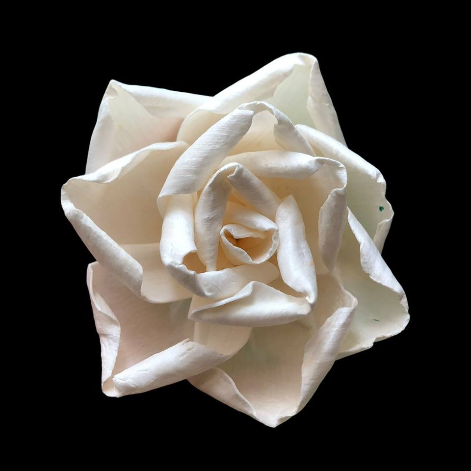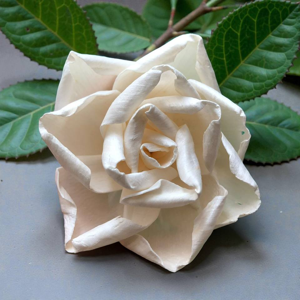 ดอกไม้โซล่าสีงาช้าง ดอกไม้โซล่าทำจากไม้ ขนาด 8-8.5 ซม. ก้านไฟเบอร์จากต้นเซสบานีอา สำหรับอโรมาเธอราพี ทำด้วยมือ
