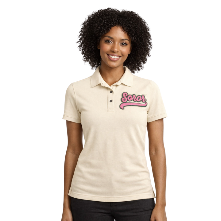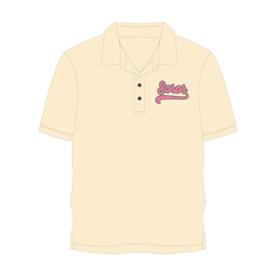 เสื้อโปโลสีงาช้าง ชมรมนักศึกษาหญิงกรีก สีชมพูและสีเขียว สำหรับนักศึกษาหญิง สไตล์ลำลองทันสมัย