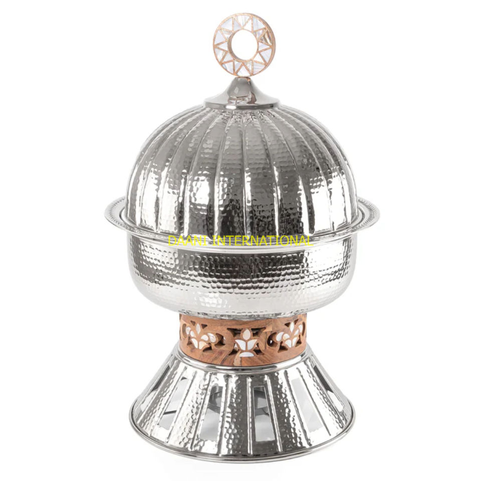 หม้อปรุงอาหารสแตนเลสสีขาวงาช้างแบบฝังลายดอกไม้แม่ของไข่มุกดีไซน์หรูหราสำหรับจัดเลี้ยงและบ้าน