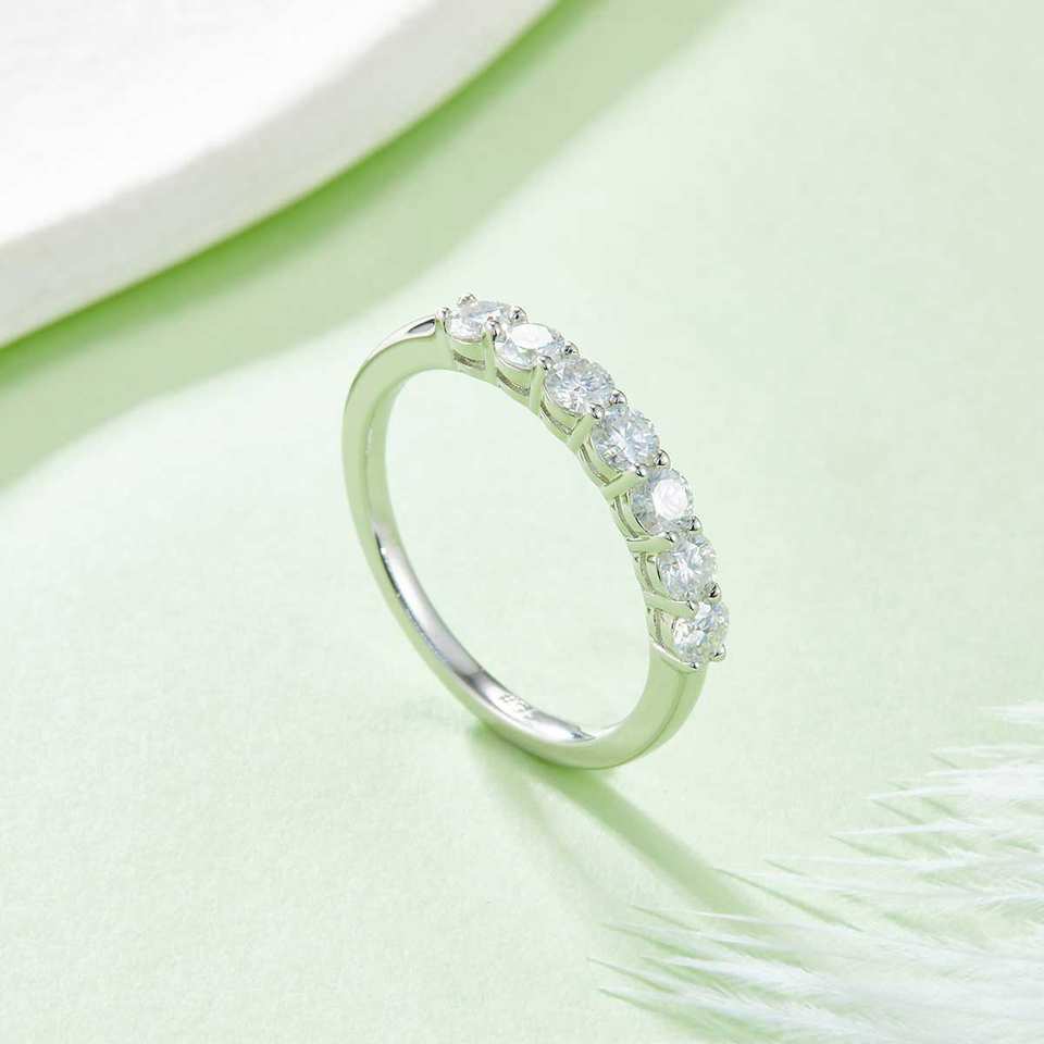 แหวน J&C Seven Star Row เงินแท้ 925 ชุบไวท์โกลด์ เพชรแล็บโกรว์สี D น้ำหนัก 0.7 กะรัต