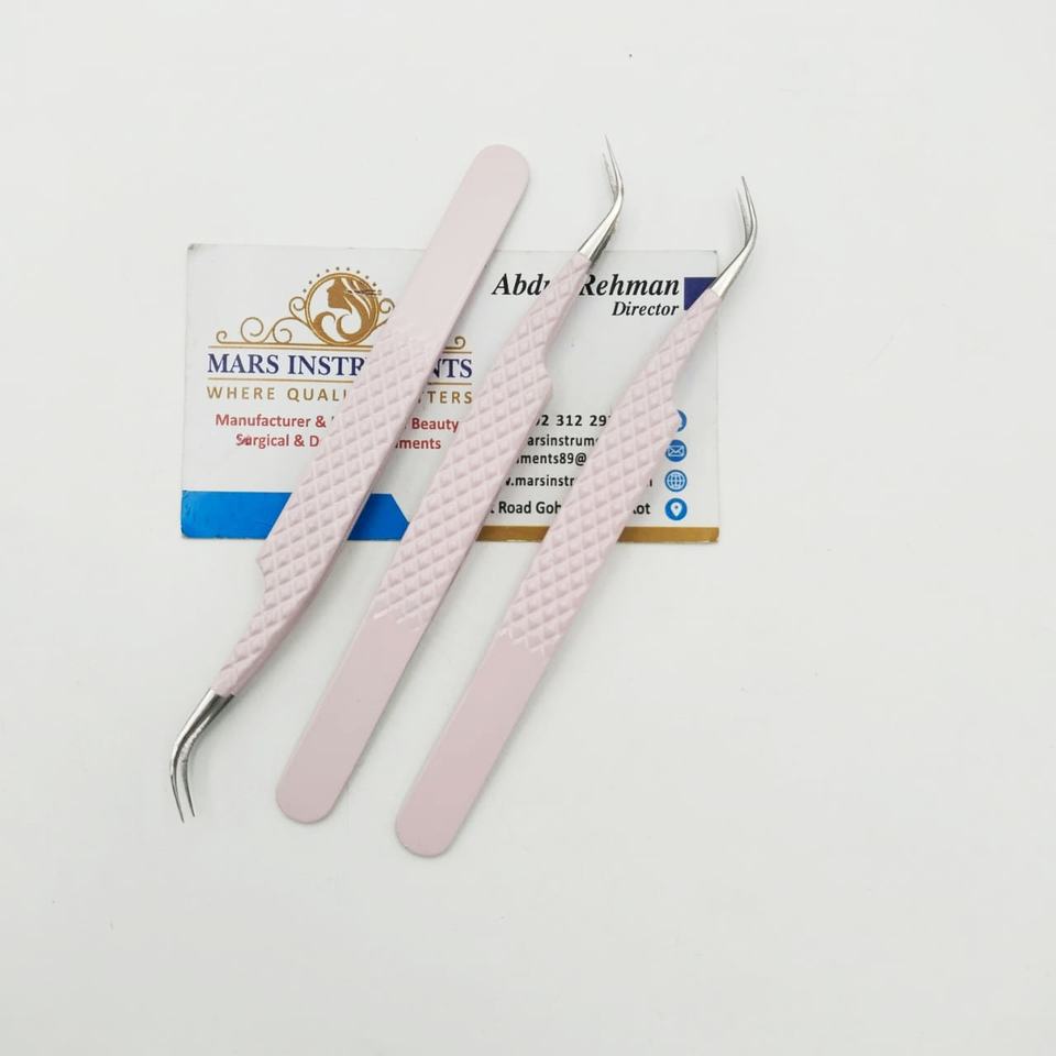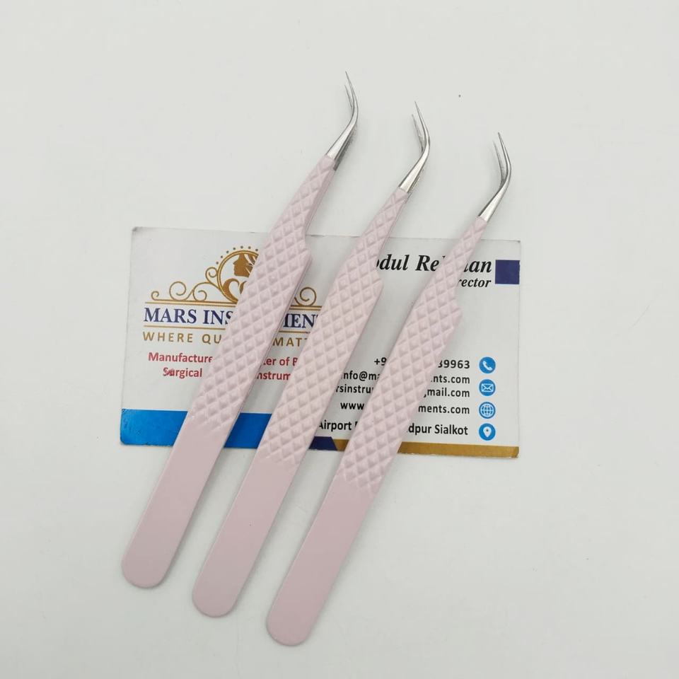 J แหนบต่อขนตาปลายแหลมปลายแหลมใยสีชมพูอ่อน