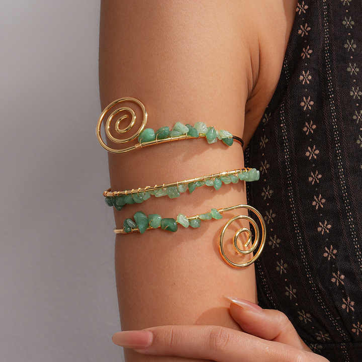 สร้อยข้อมือหินธรรมชาติทรงกลมหลายชั้น ชุบทอง สำหรับผู้หญิง สไตล์มินิมอล ดีไซน์เฉพาะตัว หรูหรา แฟชั่นระดับไฮเอนด์