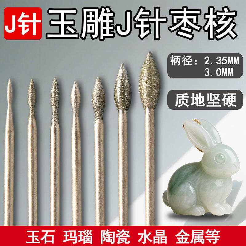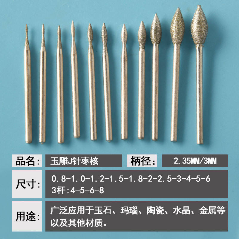 หัวเจียรเพชรรูปตัว J ขนาด 2.35 มม. แบบเรียว สำหรับขัดเครื่องประดับ อุปกรณ์เสริมเครื่องมือโรตารี่