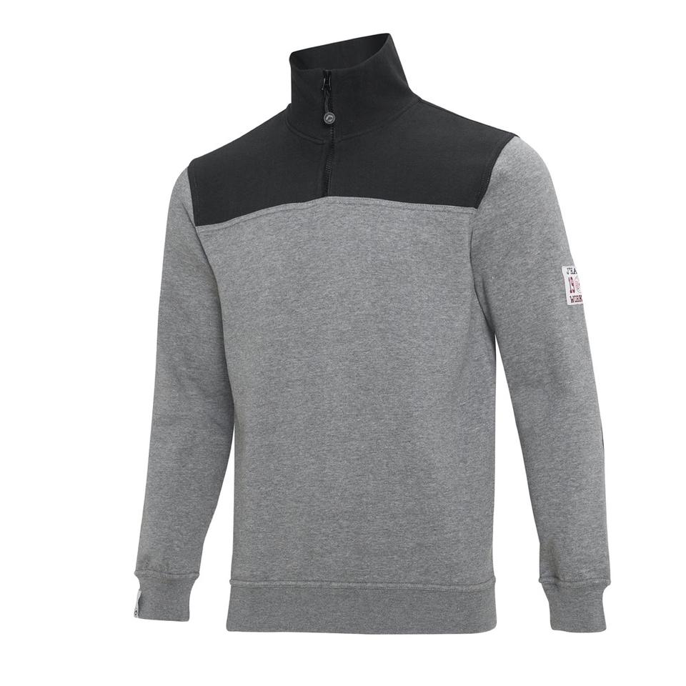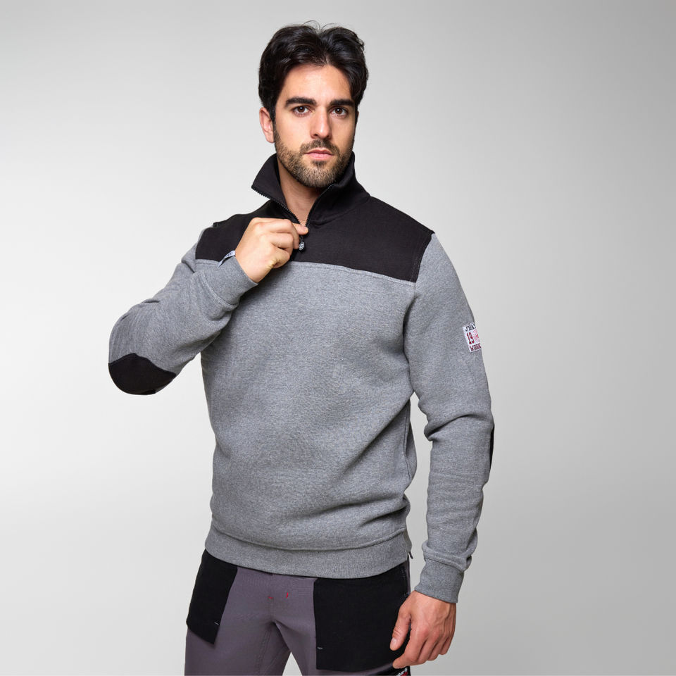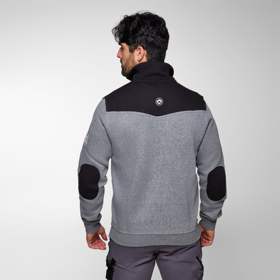 J'hayber เสื้อสเวตเตอร์สีเทาขนาดใหญ่แบบเนบราสก้าพร้อมซิปคอตั้งและข้อศอกปัก3D แบบแข็ง
