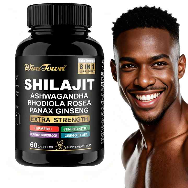 Shiajit ashwagandha ขมิ้นโสมแปะก๊วย biloba Cordyceps เห็ดตำแยพริกไทยดำส่วนผสมหลัก