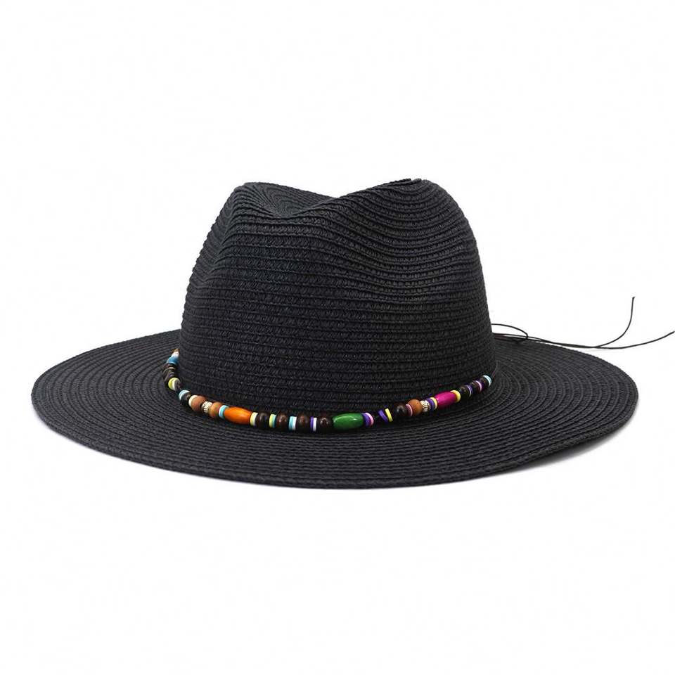 หมวกปานามา J353 สำหรับทุกเพศ ทรงเฟโดรา ปีกกว้าง สำหรับฤดูใบไม้ผลิและฤดูร้อน ทำจากฟาง ป้องกันแสงแดด เหมาะสำหรับการเดินทาง ชายหาด สไตล์ลำลอง ตกปลา