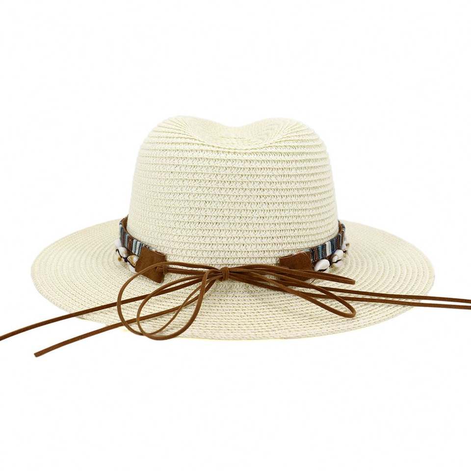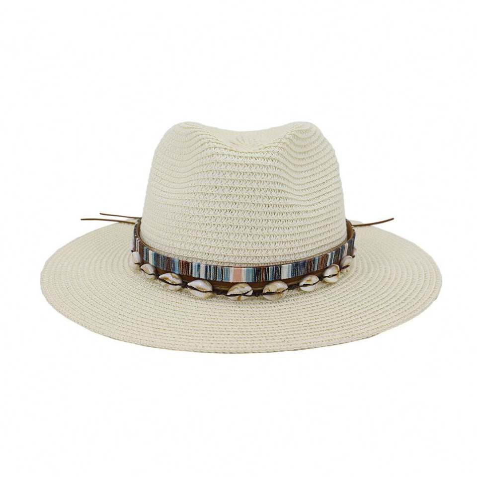 หมวกฟีโดราสานทรงยูนิเซ็กซ์ รุ่น J356 ตกแต่งด้วยเปลือกหอยสไตล์ภาพพิมพ์ สำหรับกันแดดกลางแจ้ง เดินทางไปชายหาด และตกปลา