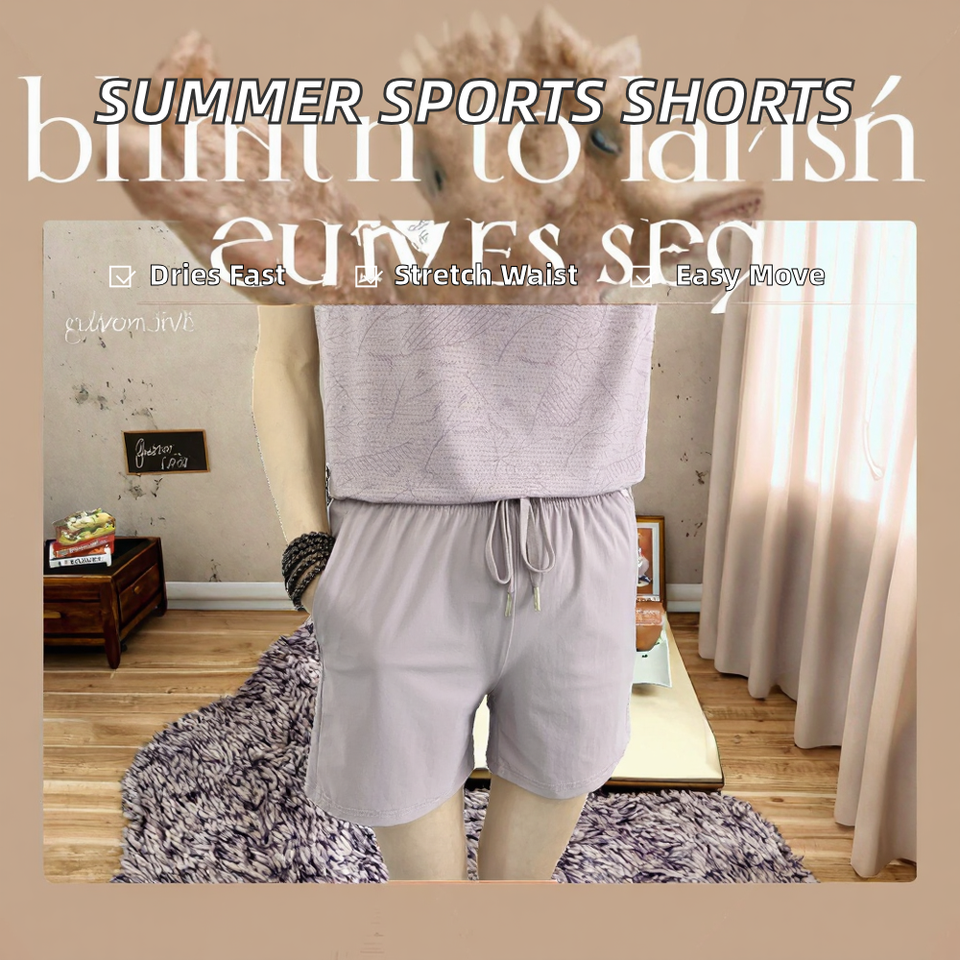 กางเกงขาสั้นฤดูร้อนใหม่ JAC22 P5676 สำหรับผู้หญิง เอวยางยืด ทรงหลวม ผ้าฝ้าย 100% แห้งเร็ว เอวกลาง