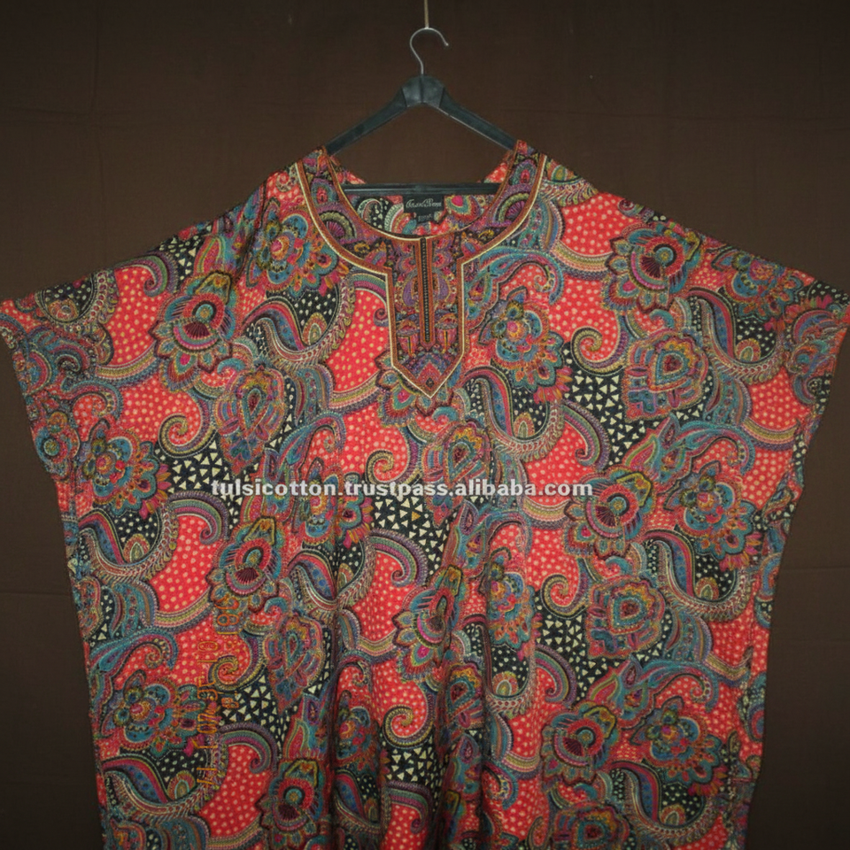 Jaipur ชุดนอนสตรีผ้าฝ้ายพิมพ์ลาย, ชุดนอนยาวระบายอากาศได้ดีสำหรับผู้ใหญ่ชุดไซส์ใหญ่พิเศษ
